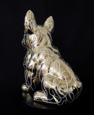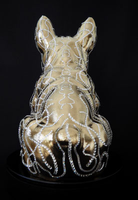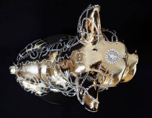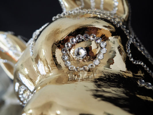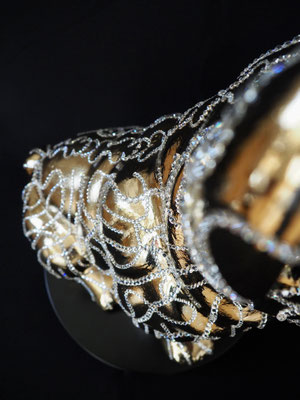 AURELIUS is an interpretation of traditional ornaments from the time of the nobility as well as the modern era. With its striking diamond made of crystal-clear crystal, it received its striking look, which is covered with white curved threads and a brocade pattern.